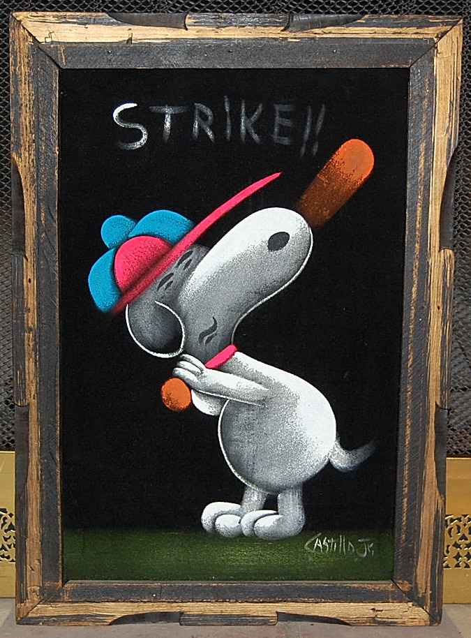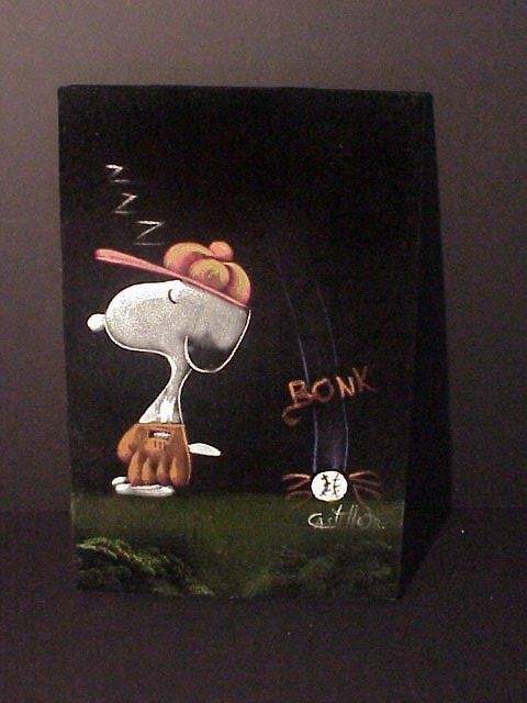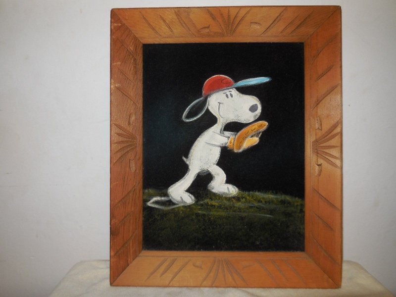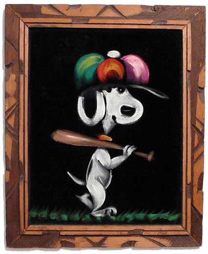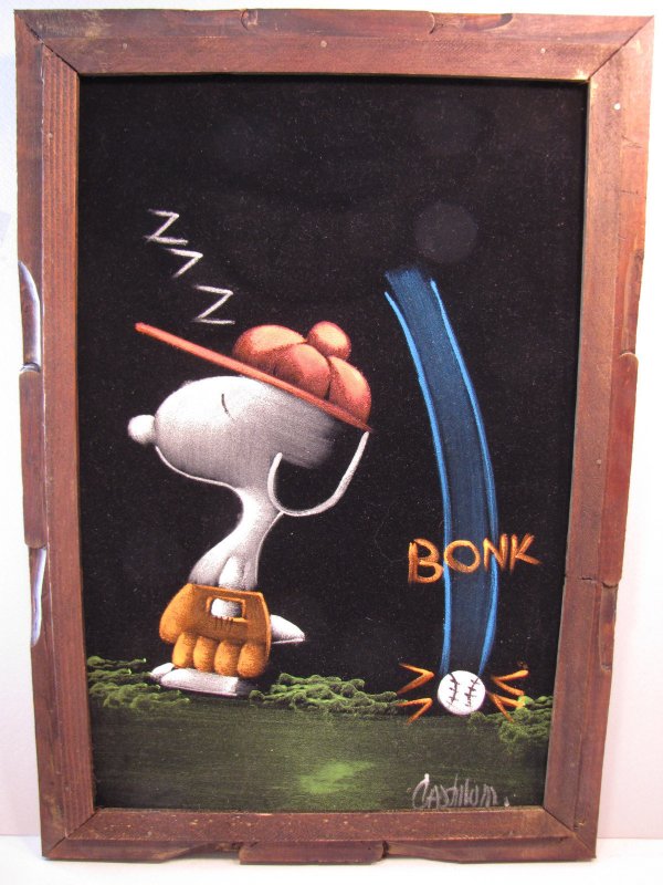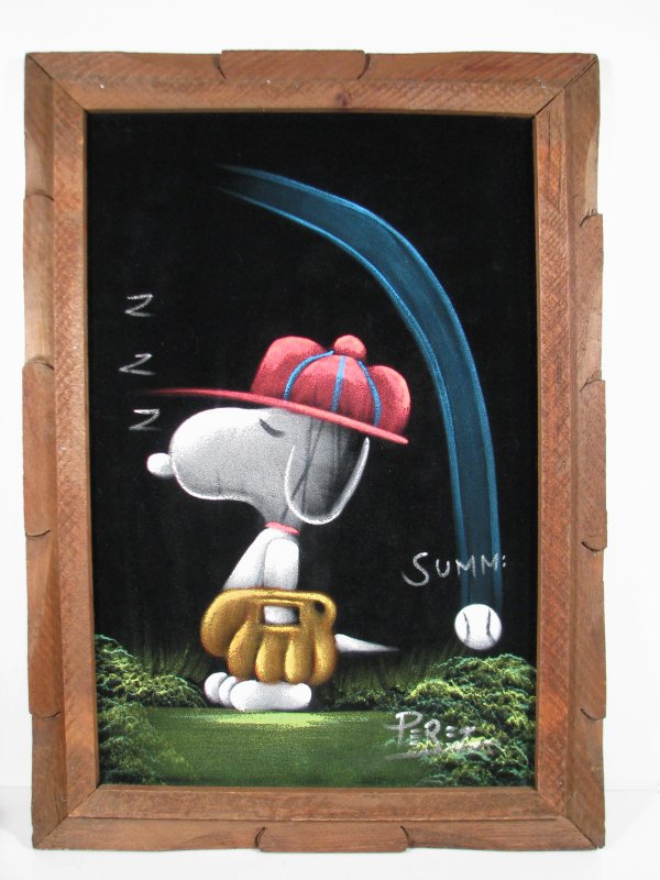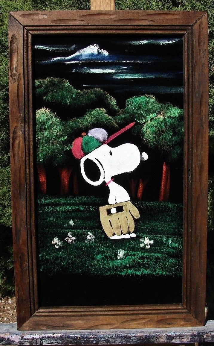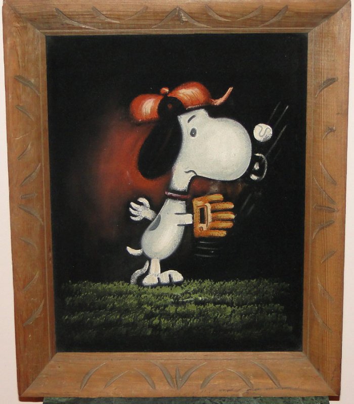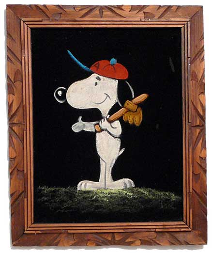 Baseball Snoopy Black Velvet Painting