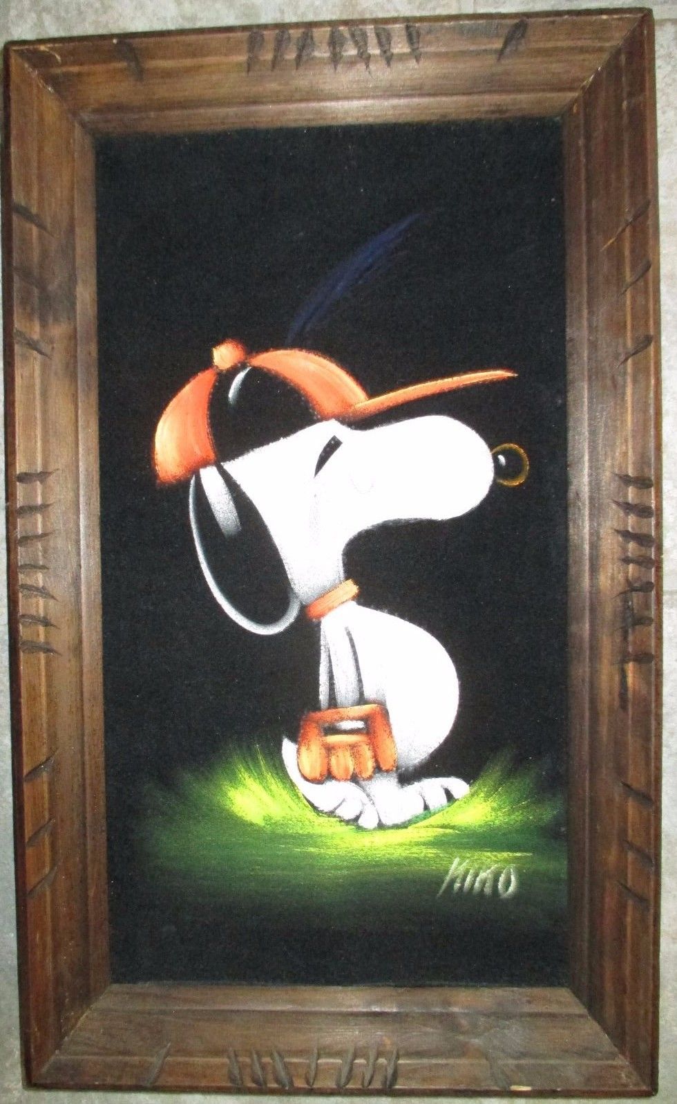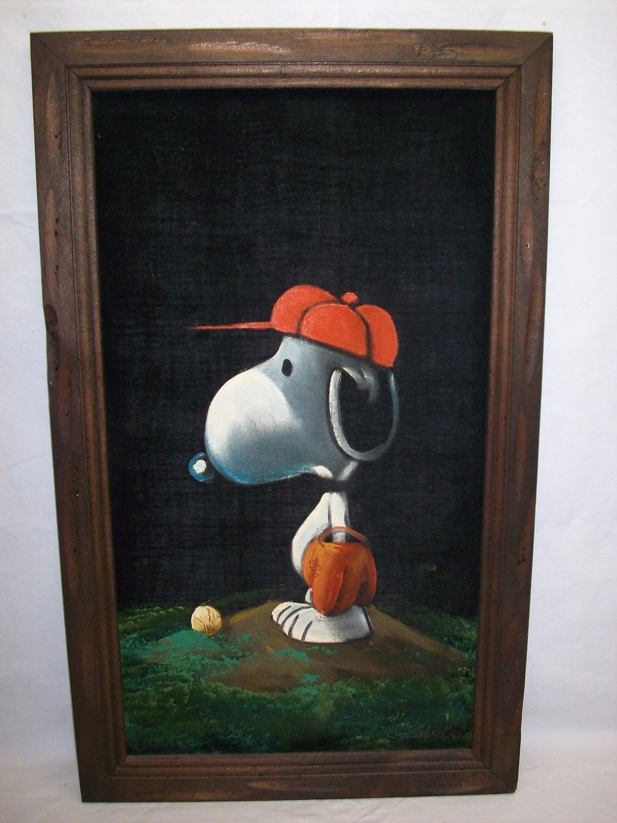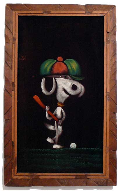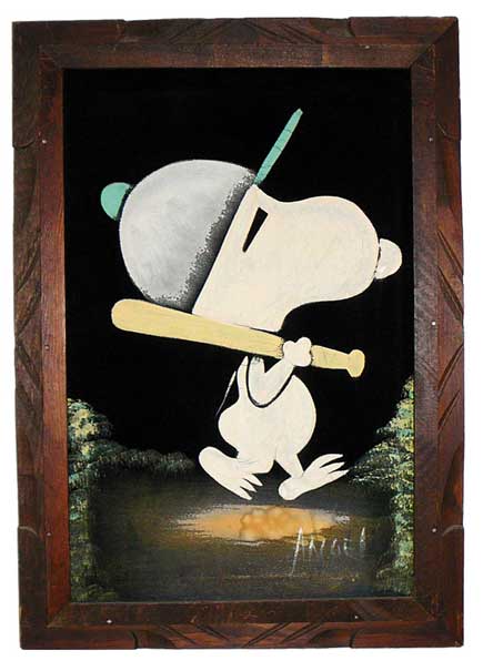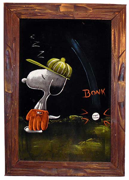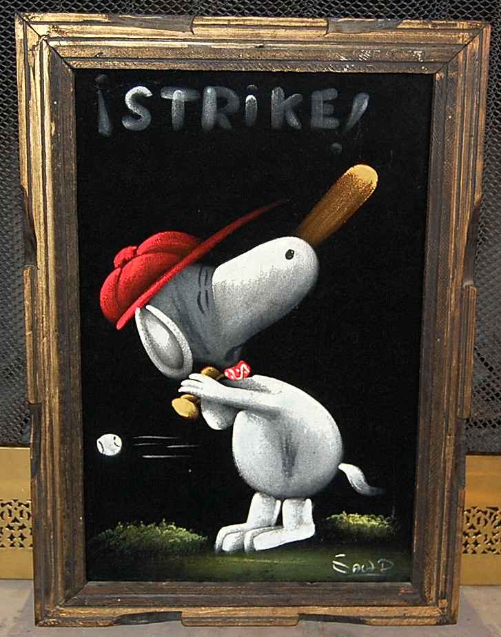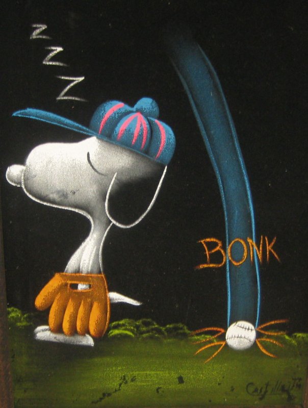 Baseball Snoopy Black Velvet Painting