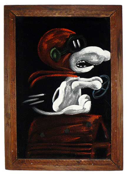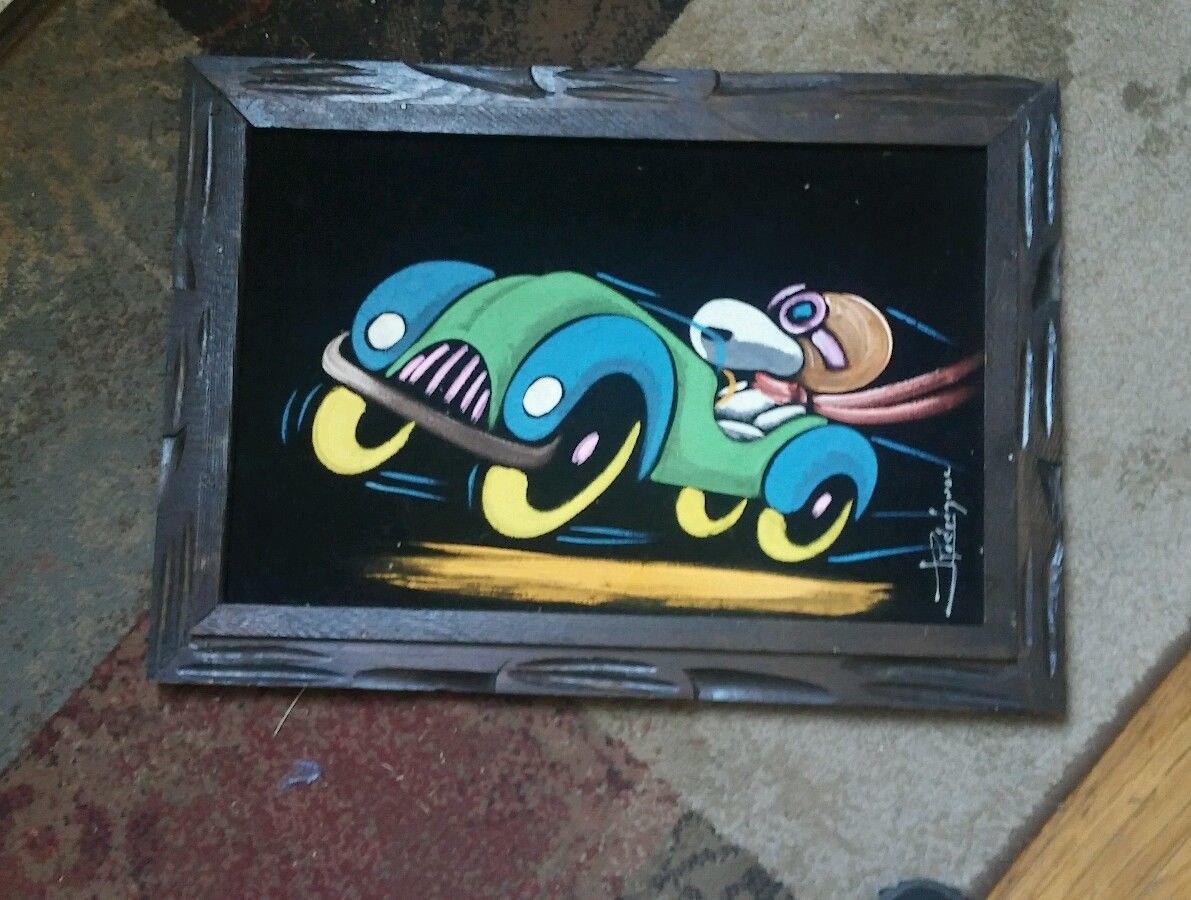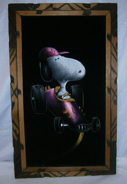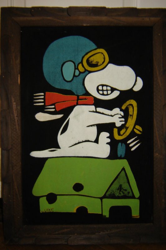 Snoopy Flying Ace in Car Black Velvet Painting