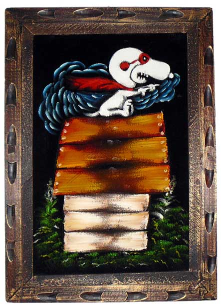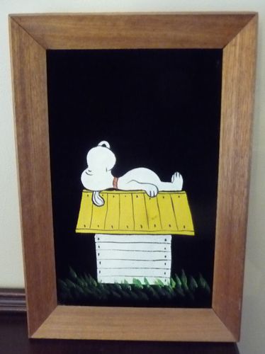 Snoopy on Doghouse Black Velvet Painting