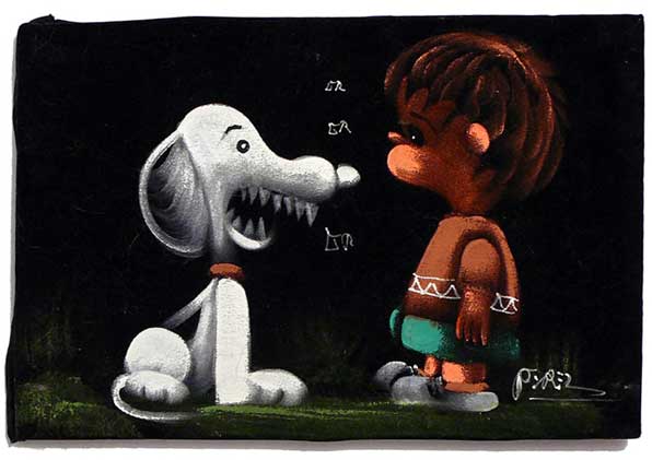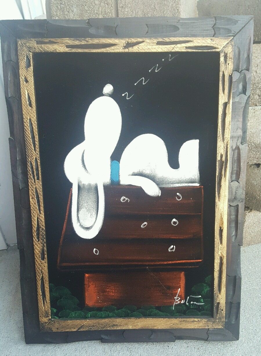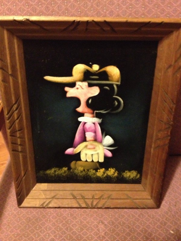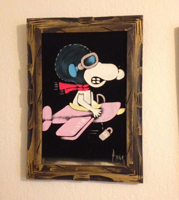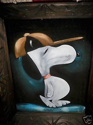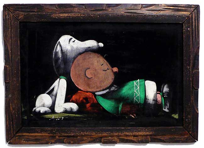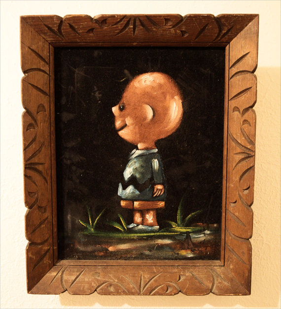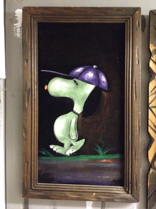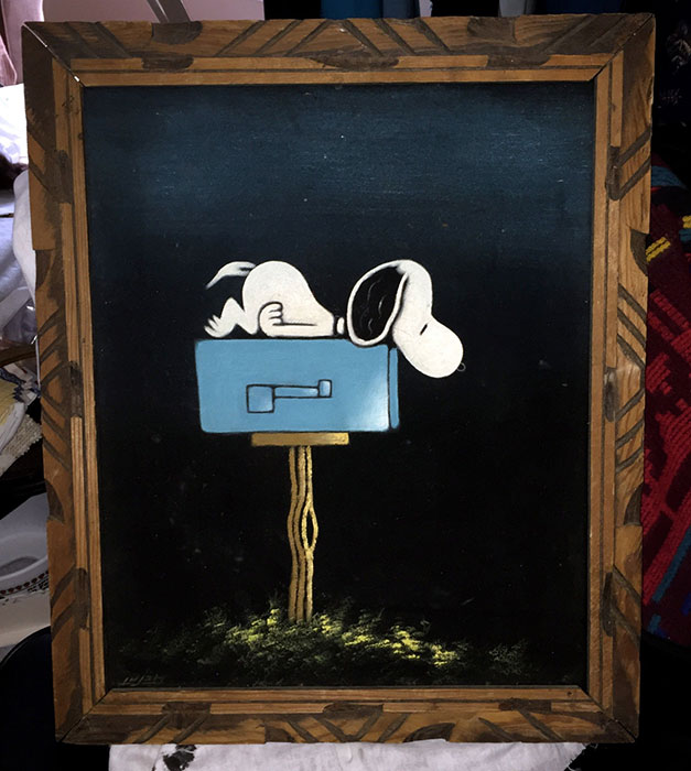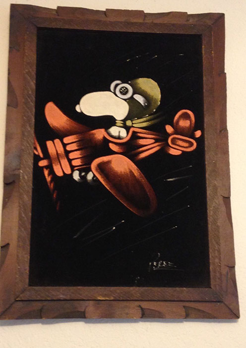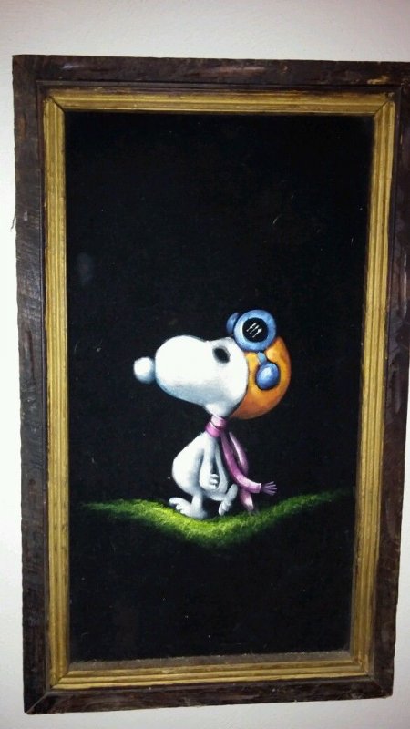 The artwork featured on this page is collected from the second-hand online shops full of unloved Peanuts Black Velvet Paintings. They are gathered here for your appreciation and amusement. While I don’t know their history or artists, the artistic license speaks for itself.