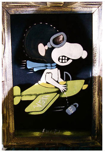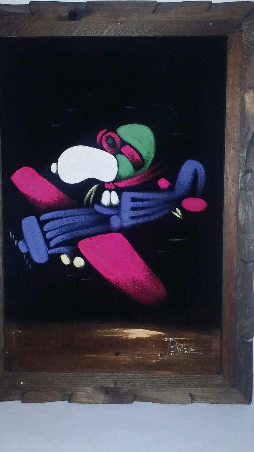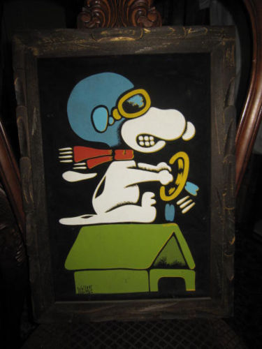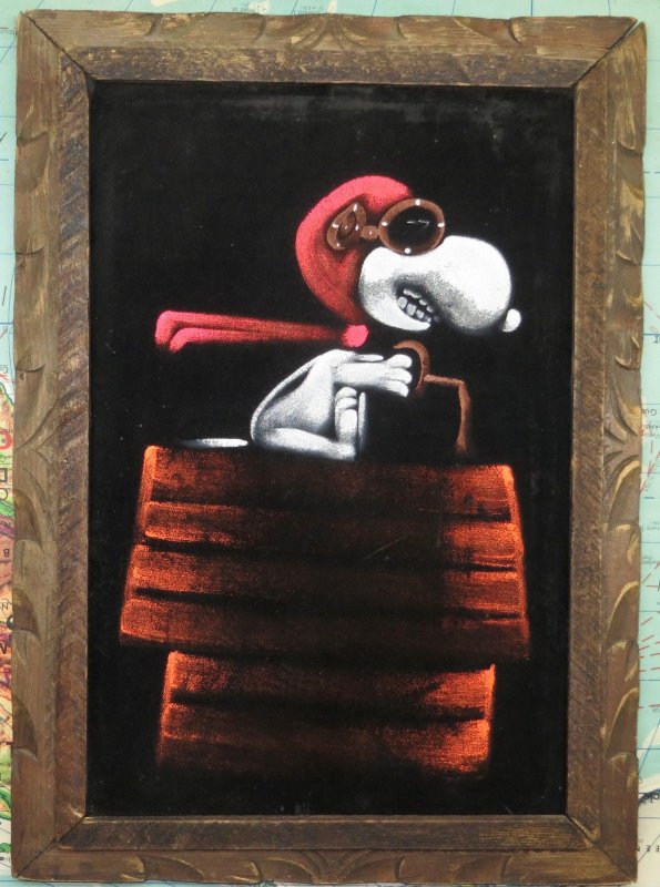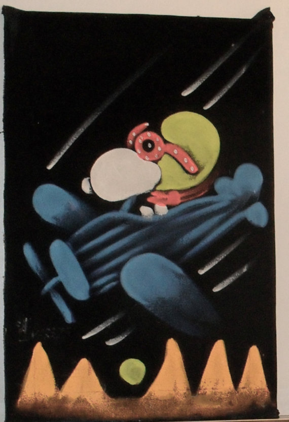 Snoopy Flying Ace Black Velvet Painting