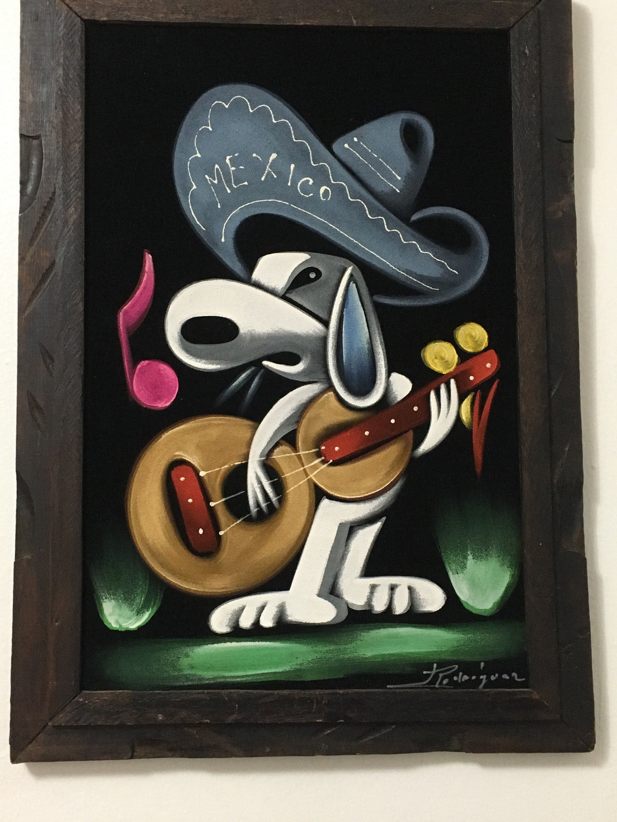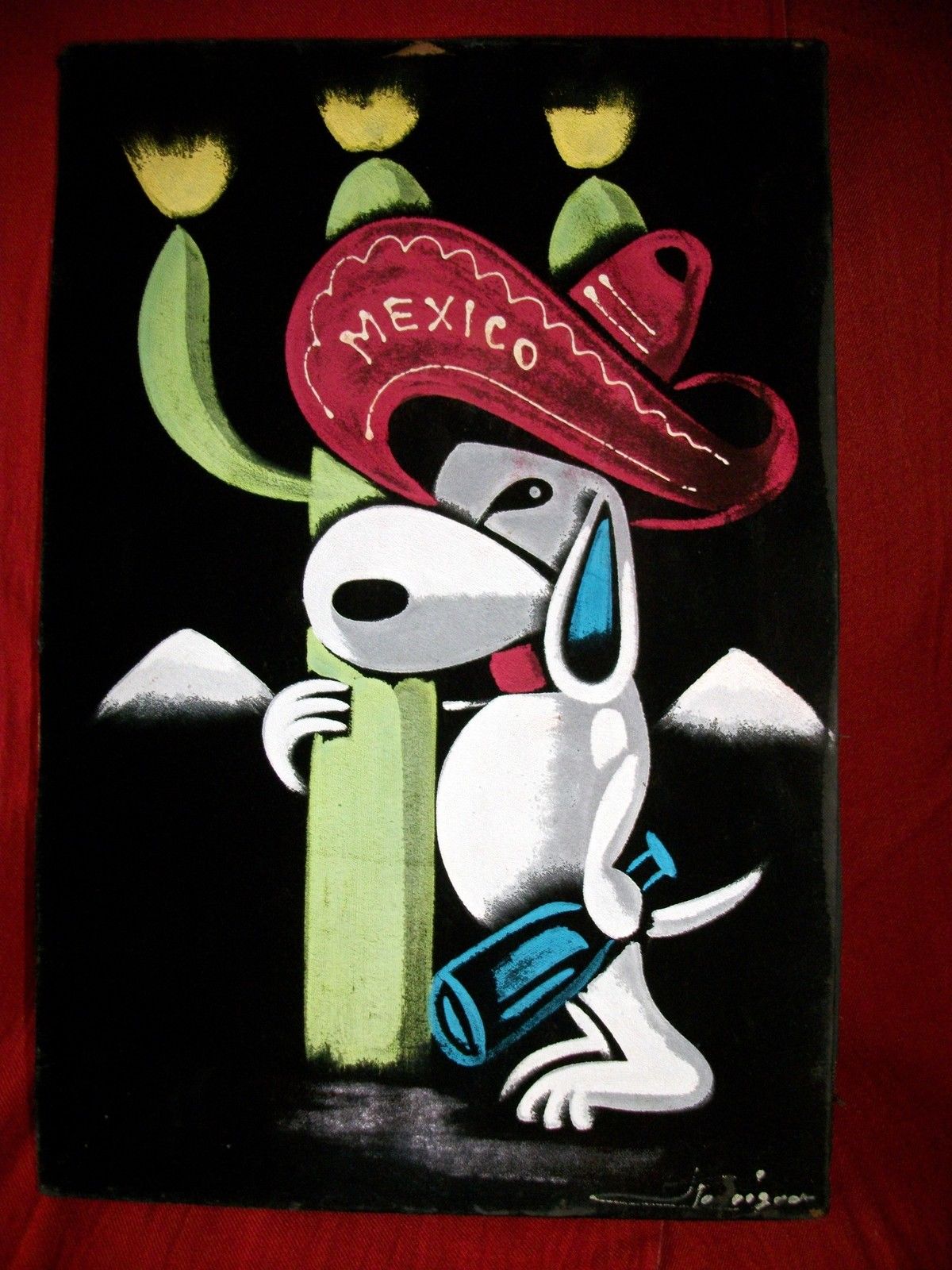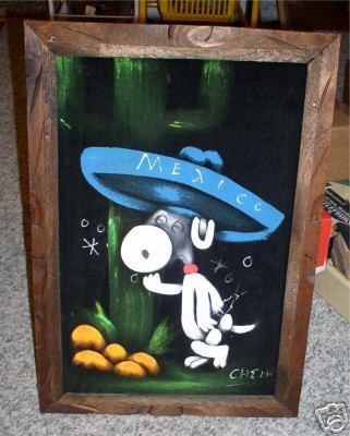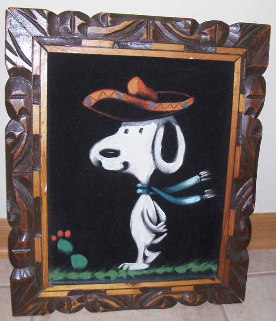 Mexican Snoopy Black Velvet Painting