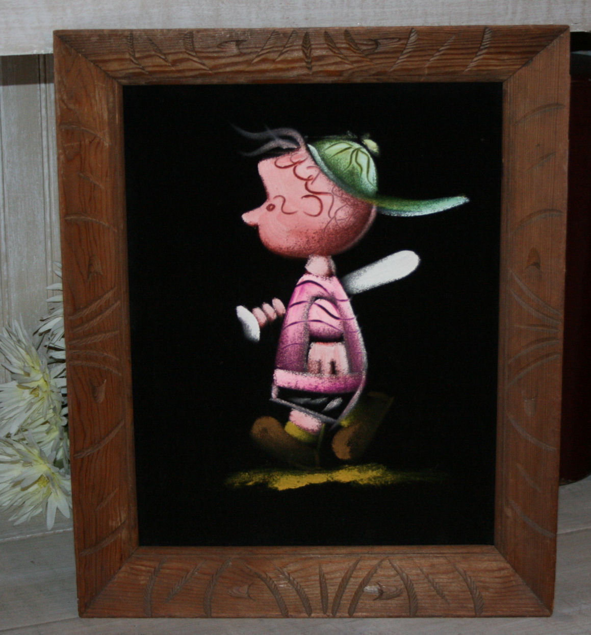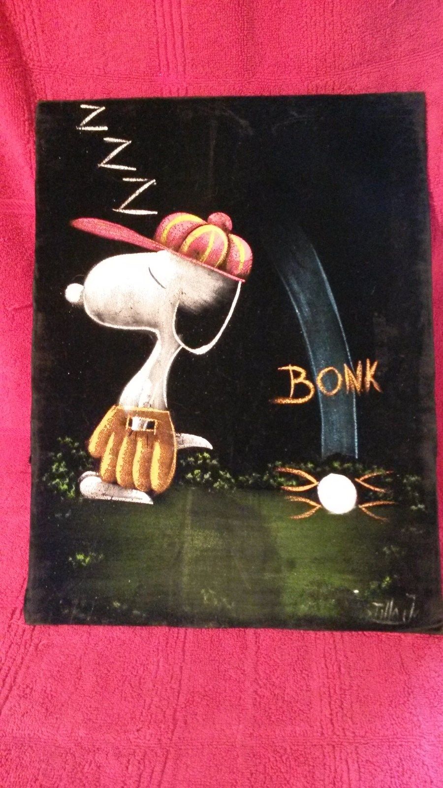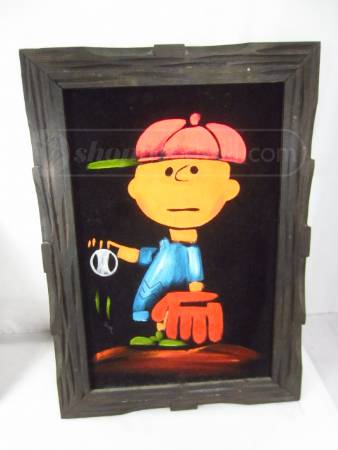 Charlie Brown Baseball Black Velvet Painting