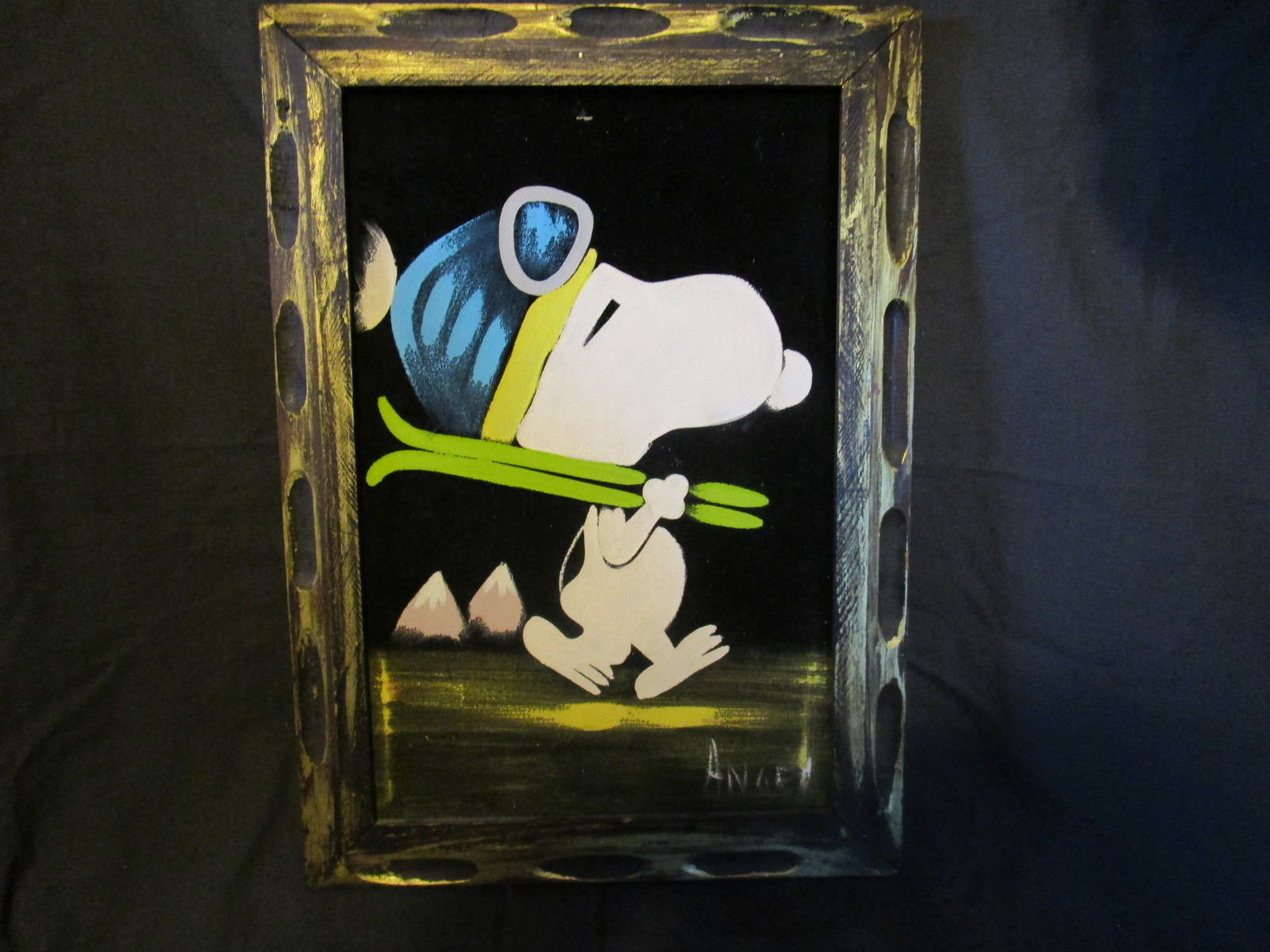 Snoopy Skiier Black Velvet Painting