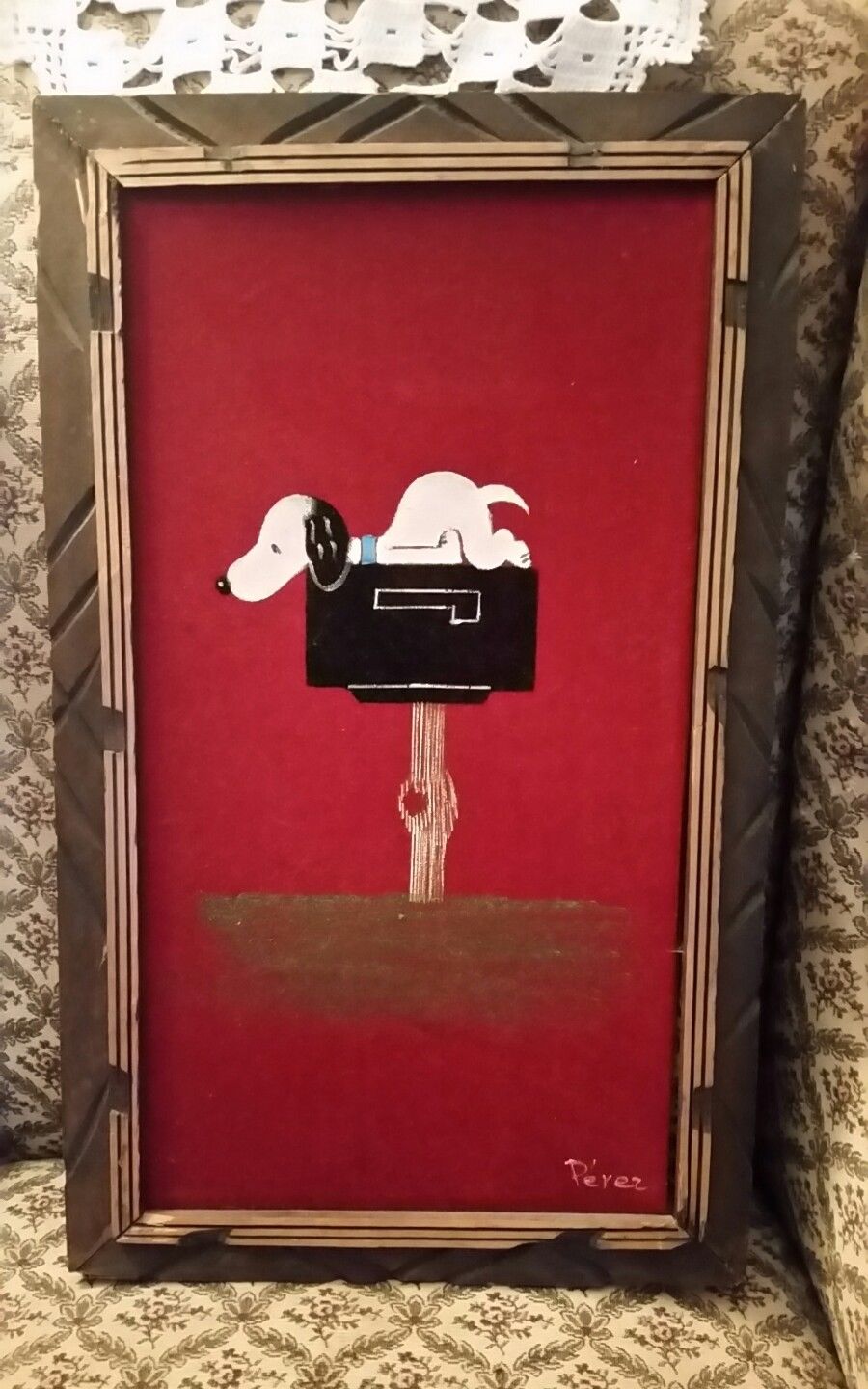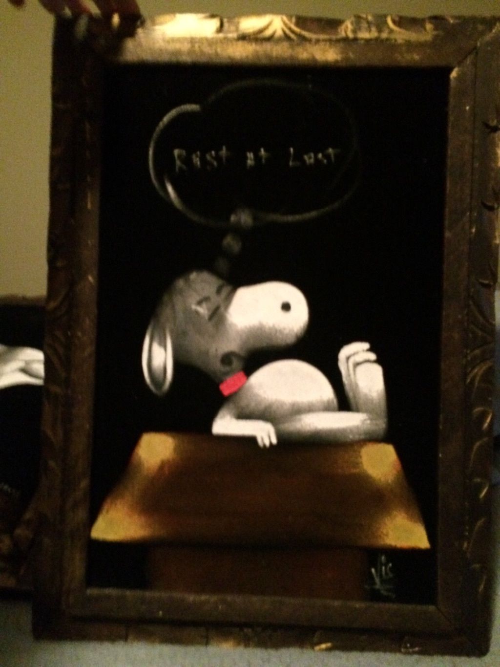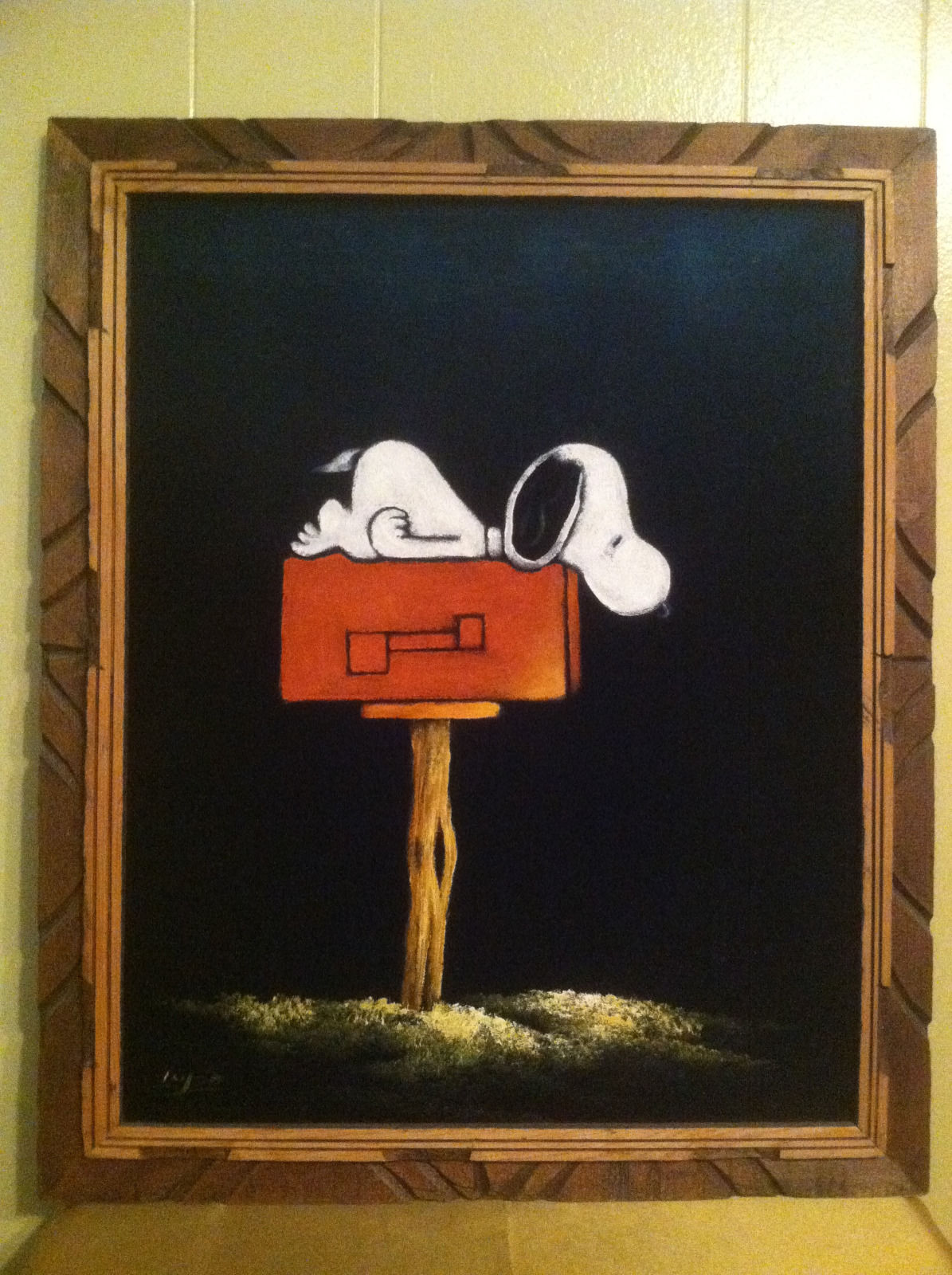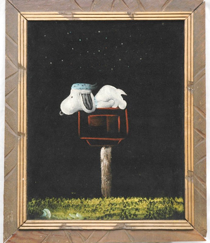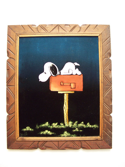 Snoopy on Mailbox Black Velvet Painting