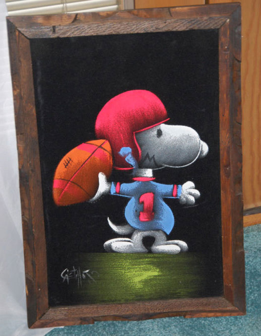 Football Snoopy Black Velvet Painting