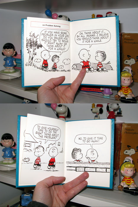 Welcome to the Philosophy of Peanuts gallery! Gathered here are photos from some of our vintage books featuring the wit and wisdom of the Peanuts gang. Join us on our Facebook group for a new proverb every Friday.