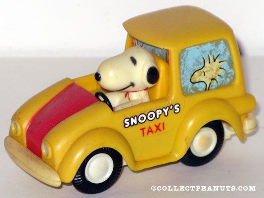 Snoopy Friction Car Set – Train Engine, Taxi, Doghouse and Bathtub